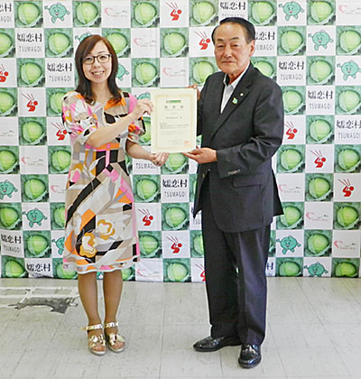 NPO法人ふるさとオンリーワンのまち(津田令子理事長)は2011年の発足以来、独特の風土や伝統文化、産物、無形のおもてなしなどユニークな観光資源を、「ふるさとオンリーワンのまち」として認定している。7月29日には、群馬県吾妻郡嬬恋村(熊川栄村長)を訪れ、「嬬恋村におけるキャベツを活かした農業と観光の共存によるコミュニティづくり」の取り組みを第7号認定とし、津田理事長が熊川村長に認定証を授与した。