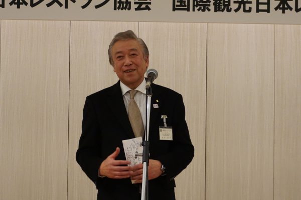 国際観光日本レストラン協会(尾川欣司会長)は1月18日、東京・白銀台の八芳園で新年賀詞交歓会を開いた。尾川会長は2017年の訪日外客数が2869万人に急成長していることに触れ、「東京オリンピックの20年には4000万人が訪れる。本当の意味での勝負はこれから。日本を訪れてくれた外国人観光客に私たちは何ができるか。『日本で美味しいものが食べられた』と心からの感動を与え、リピートしてもらうことが大事」と語り、今後の観光振興に向けて、日本の食の果たす役割を強調した。