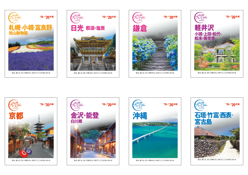 第1弾として、5月22日(火)に「札幌・小樽・富良野・旭山動物園」「日光、那須・塩原」「鎌倉」「軽井沢、小諸・上田・松代・松本・善光寺」「京都」「金沢・能登・白川郷」「沖縄」「石垣・竹富・西表・宮古島」を刊行する。