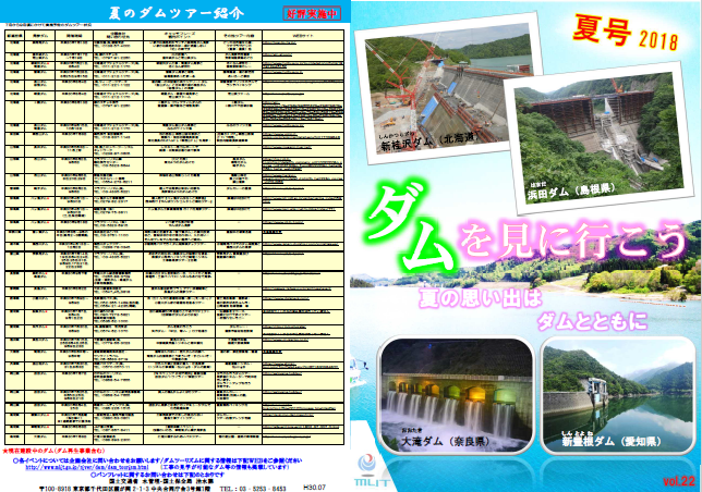 なお、同号のパンフレットで、「転流工の工事を見に行こう<新丸山ダム(岐阜県)>」「ダムの本体工事真っ盛り<椛川ダム(香川県)>」のほか、「夏の星空と津軽ダムのライトアップ<津軽ダム(青森県)>」「ダム湖に上がる5,000発の花火<苫田ダム(岡山県)>」を特集している。