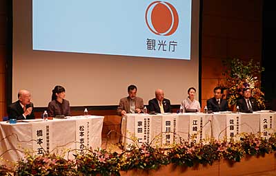 観光庁は11月28日、東京都内で「日本の観光、やります!」と題した観光地域づくりシンポジウムを行った。パネルディスカッションでは、橋本五郎読売新聞特別編集委員をコーディネーターに、家田仁東京大学大学院工学系研究科社会基盤学専攻教授、三重県観光審議会委員の江崎貴久旅館海月5代目女将、熊本県の佐藤義興阿蘇市長、日本旅行業協会副会長の田川博己JTB社長、観光庁の久保成人長官、フリーアナウンサーの松本志のぶさんの6人が登壇。「『日本の観光』の今と未来を考える」をテーマに、お客を迎える「おもてなし」や、訪日外国人受け入れでの英語標識の促進などについて語った。