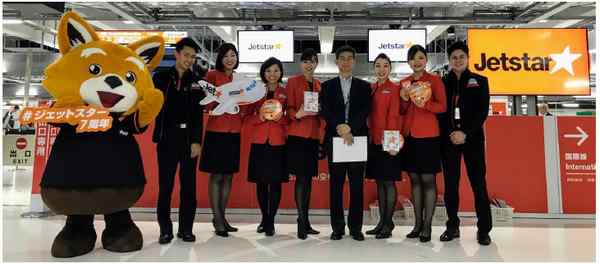 同日には、成田国際空港で記念イベントを実施した。7周年にちなみ7人のキャビンクルーとマスコットの「ジェッ太」がチェックインカウンター前で特製うちわをプレゼントし、記念撮影を行った。