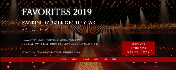 「一休 FAVORITES 2019」 BEST SALES OF THE YEAR (売上ランキング)