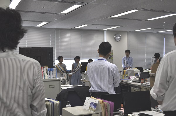 髙橋次長から「1日子ども観光庁長官」の辞令を受け取ったあとはフロアの一角であいさつ回りをし、先々で拍手で迎えられた。