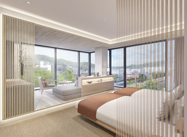 同ホテルは、JR鎌倉駅東口徒歩2分の若宮大路沿いに建てられる。客室は鶴岡八幡宮二の鳥居が見えるプレミアムコーナールームや、小上がりが特徴的なスーペリアルームなど12種138室を用意。宿泊客だけの特別な鎌倉の別邸として、非日常のときめきと日常の安らぎを演出する。