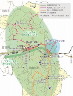 利用可能な交通は、既存の公共交通の鉄道やバスのほか、新たな交通のデマンド交通と定時定路線で運行する交通(月ヶ瀬ニュータウン線)がある。デマンド交通は、村内のどこでも自由に乗降できる村内移動サービスと、道の駅や鉄道駅を結ぶ村外移動サービスが開始される。