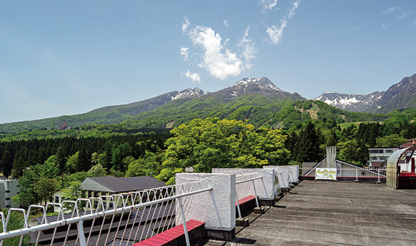 360度見渡せる「赤倉ホテル」の屋上展望台からは、国立公園の自然豊かな景色や頸城(くびき)平野、野尻湖なども眺めることができる。天気が良い日には佐渡まで見えることも。特に百名山の一つ、妙高山を間近で見たい方にはおすすめだ(冬季閉鎖)。