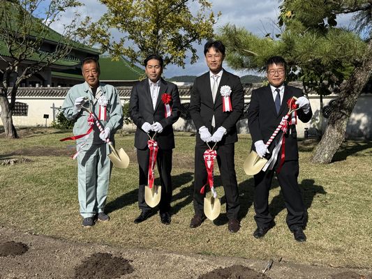 右から2人目が山口康介会長(10月下旬、燕趙園での植樹式)