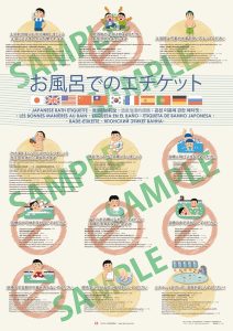 「お風呂でのエチケット」を10言語併記で説明するポスター販売 日本温泉協会