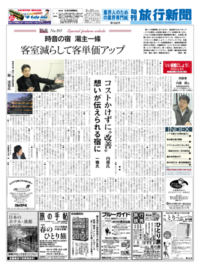 厳しい市場環境にありながら、高品質のおもてなしサービスを提供しお客様を集客している旅館が多くある。このような旅館は従業員の職場環境を整え、お客様と真摯に向かい合える仕組みができている。今回からスタートする「いい旅館にしよう!」プロジェクトでは、先進的な取り組みをしている旅館経営者と、産業技術総合研究所の工学博士・内藤耕氏が「コストをかけない経営改革」について語り合う。第1回目は、客室を減らして、客単価を大幅にアップさせた、宮城県・鎌先温泉の時音の宿 湯主一條の一條達也社長だ。