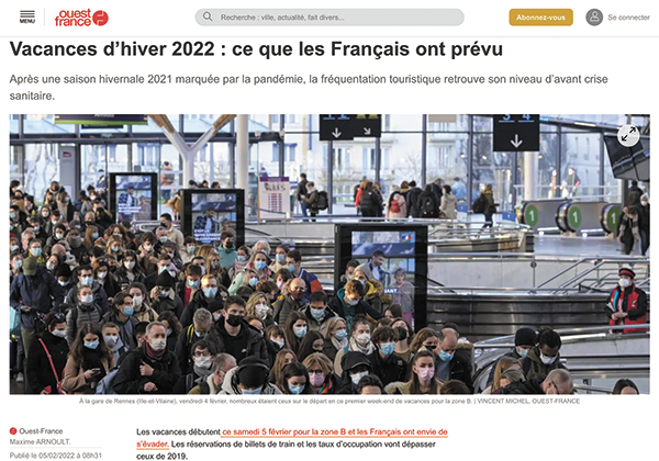 2月のフランスは3つの学区ゾーンごとに、順に2週間の冬休みを迎える。◆昨年は、新型コロナウイルスの感染対策のために全土一斉の冬休みになり、スキー場のリフトも営業禁止だったが、今年はほぼ制限がなく、コロナ以前のいつもの冬休みとなっているという。◆スキー場周辺などでの宿泊施設の予約数はコロナ以前に戻っているばかりか、それを上回っているところもあり、国鉄の予約数も既に2019年の水準まで戻り、さらに増え続けている。◆冬のバカンスと言えば、スキーが多いが、今年は大西洋岸も人気だという。コロナ禍を経て、やはり人気になっているのが、自然の中で過ごすことと、友人ではなく家族だけで過ごすバカンスの形だ。◆そして2022年のキーワードは、「スローツーリズム」だという。国もコロナ禍で打撃を受けた観光業界を支援するために、この「スローツーリズム」を、ポストコロナのフランスの新しい観光開発の軸とし、関連事業の支援をはじめた。国内旅行だけではなく、今後再開されるインバウンドでも、観光大国のフランスは「スローツーリズム」に力を入れるようだ。