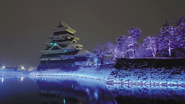 松本市の冬の2大イベント「松本市イルミネーション」と「国宝松本城氷彫フェスティバル」からなる「光と氷の城下町フェスティバル」がいよいよ開幕する。12月から2月の3カ月間は松本城レーザーマッピング「松本城〜氷晶きらめく水鏡〜」をはじめ、市街地イルミネーションで街が彩られる。そして、1月下旬には「国宝松本城氷彫フェスティバル」で城と冠雪の北アルプスを背景に瞬間の芸術・氷像が出現。この冬、光と氷の幻想的で壮麗な世界が信州・松本に広がる。