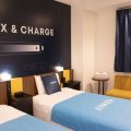 観光とビジネスの拠点として利用してもらえるよう、客室はツインとダブルタイプのほか、スイートやベッドを4台設置したファミリールームを用意した。また、全客室でフランスベッドと共同開発したマットレスを設けた。