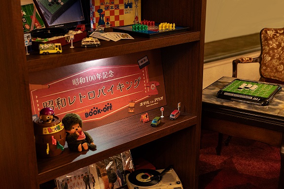 今回はその一環で、ブックオフとモノファクトリーの合同ブランド「REMARKET(リマーケット)」と協業し、昭和のレトロな玩具や黒電話など約20点用意。オーシャン・ウイングのロビーにバイキングコーナーを設置する予定で、部屋への持ち帰りや撮影に使用するなど、自由に利用できる。貸出は無料。