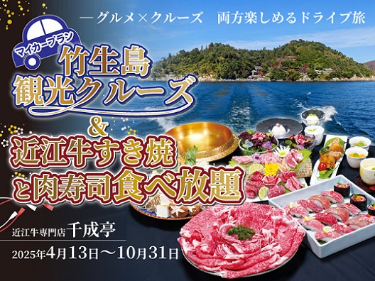 近江トラベル(伊藤孝樹社長、滋賀県彦根市)はこのほど、近江牛の畜産や飲食店などを手掛ける千成亭風土(上田健一郎社長、滋賀県彦根市)とコラボレーションした企画「マイカープラン!彦根港発着 竹生島観光クルーズと千成亭ぎゅ~じあむの近江牛すき焼き&肉寿司食べ放題」を売り出した。竹生島へのクルーズとグルメが楽しめるプラン。