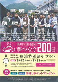 熊本県・黒川温泉と大分県・由布院温泉はこのほど、熊本地震をきっかけに展開する共同事業「黒川×由布院 夢つなぐ200日」を始めた。相互の温泉地を利用しやすいよう連携し、連泊割引プランや入浴無料チケットなどを提供する。