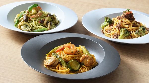 イタリア産デュラムセモリナ粉と、こだわりのソースを使用した青のペスカトーレ、噴火湾産帆立と海老のアメリケーヌ、北海道産牛のラグー――の3種で、ドリンクやサラダのセットメニューへの変更も可能。