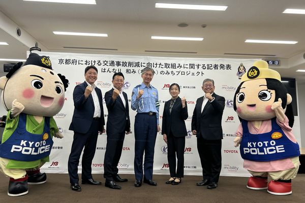 JTB(山北栄二郎社長)などは8月29日(金)、京都府の交通事故削減に向けた「京都 はんなり 和(なごみ)のみちプロジェクト」を発足した。連携協定を京都府警察本部(吉越清人本部長)やトヨタ・モビリティ基金(豊田章男理事長)、トヨタ自動車(佐藤恒治社長兼CEO)、東京海上日動火災保険(城田宏明社長)と結び、官民連携による観光地の交通事故対策などに取り組む。