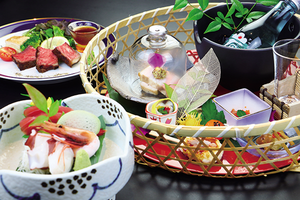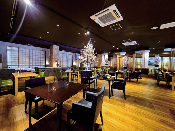 ダイニング「山の風」では、掘りごたつ席のほかテーブル・椅子席が新設。音と香りがダイレクトに伝わるオープンキッチンで、出来立てあつあつの料理を味わえる。