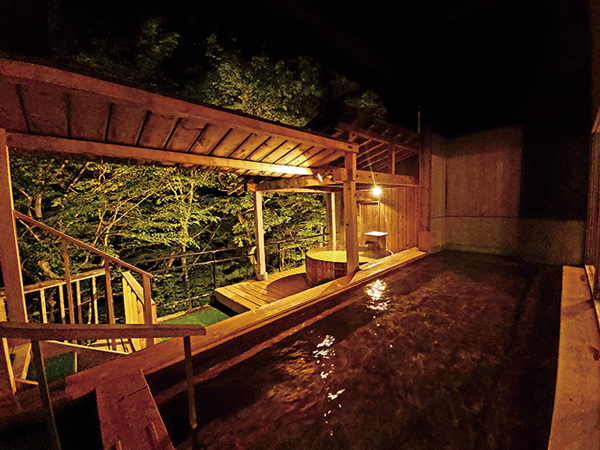 たっぷりの湯がたたえられた自慢のお風呂は、100%源泉掛け流しで、美肌効果が高いと評判。露天風呂「昇陽の湯」は、檜風呂に生まれ変わり、檜の香りに包まれながら癒しのひとときを過ごすことができる。