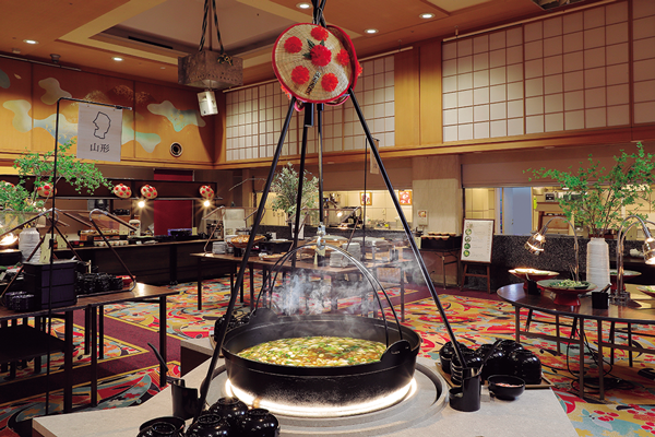 朝食ビュッフェをリニューアル。会場のメインシンボルとして直径80㎝の特大芋煮鍋を用意し、山形の秋の風物詩として地元の人々に愛される「芋煮会」を365 日体験できる。また、フレンチトーストでは、トッピングとして県産の「滴り落ちる巣枠蜂蜜」を用意、その場で生蜂蜜を削ぎ取り召し上がれる疑似収穫体験が可能だ。