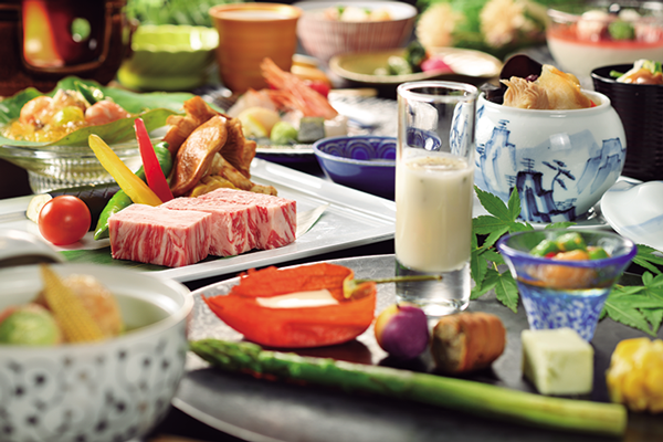 また、ご夕食は東北の旬の食材を使った和風会席。上質な個室会食場「せせらぎの杜ダイニング〜燈花〜」でのご夕食から最大400名規模の大宴会まで、様々な食事スタイルに対応可能。
