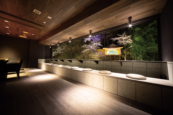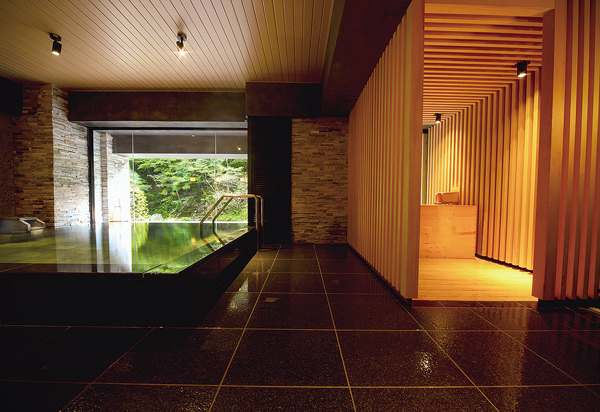 2021年には、貸切大浴場「天寧温泉」が誕生。建築家により、木のぬくもりと天然石の質感にこだわった浴場で、贅沢に大浴場を貸切ることができる。子供向けの備品や洗い場も充実しており、大人数や家族連れに好評だ。そのほか、敷地内の伏見ヶ滝を望む絶景風呂などが揃い「東山温泉発祥の湯」を満喫できる。