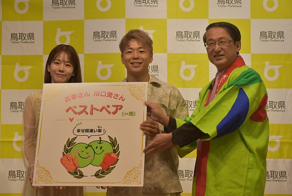 K-1世界王者・武尊選手夫妻がイベント初登壇! 鳥取県「ベストペア(=梨)」任命式を新橋で開催