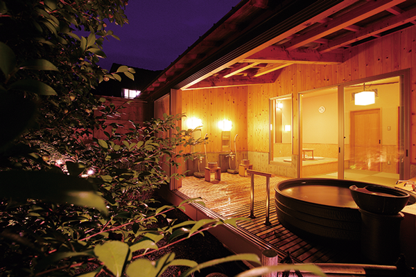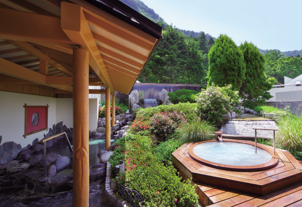 鬼怒川の名湯を存分に楽しめる大浴場の庭園露天風呂では、旅情を満喫することができる。貸切露天風呂「かく恋慕」は木造りや石造り、陶器の風呂など5種類の露天風呂に畳の部屋が備わり、湯上り後もゆっくりとくつろげる。