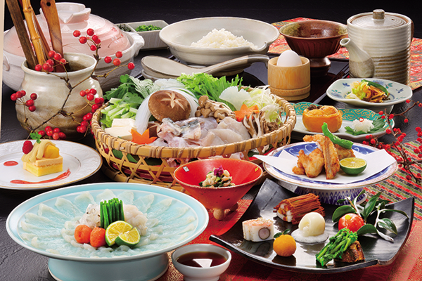 夕食は、料亭「山やましな科」や和ダイニング「和伽那」、洋彩和膳「L`Amusant(ラミュゾン)」、レストラン「ファンタジー」で、四季のうつろいを楽しみながら旬の地元食材を生かした料理をいただける。会席料理「旬彩篭盛会席」や、旬の料理が彩る味覚プランも好評だ。