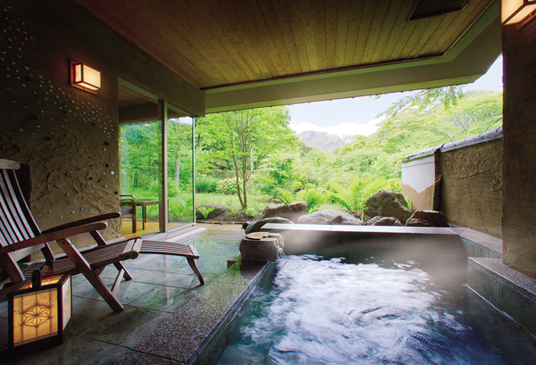 さまざまなニーズに応えるため、客室はそれぞれ趣向の異なるタイプを用意。そのすべてに露天風呂が備えられており、谷川岳の景観と共に源泉掛け流しの温泉を心置きなく堪能できる。また、大きな湯船でゆったりと入浴したいなら、男女別大浴場「一の蔵」や「仙の蔵」、露天風呂「すずむしの湯」、「ほたるの湯」もおすすめだ。
