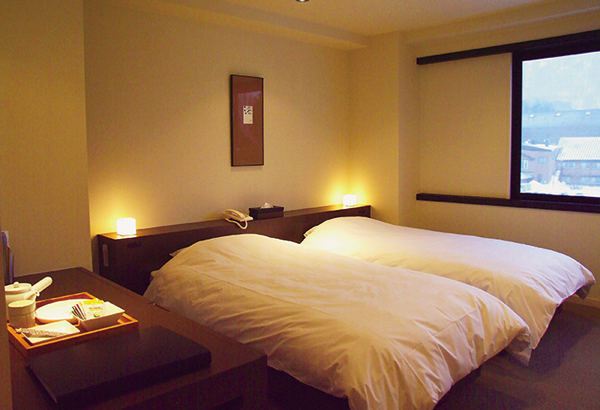 客室は、新館「湯房」のモダンな部屋を中心に、豊富なバリエーションから選ぶことができる。窓の外に広がる雄大な景色を眺めるひとときは、日頃の喧騒から解き放たれる瞬間だ。