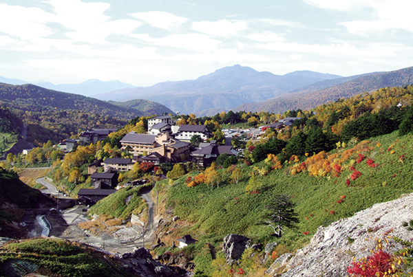 標高1800mの国立公園内に湧き、万病に効果を表すという名湯、万座温泉。その大自然の中で天然温泉めぐりを楽しめ、心と身体の癒しを堪能できる宿が「万座温泉日進舘」だ。