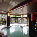 風呂:男女別大浴場「長寿の湯」(内湯4)各1、男女別展望露天風呂「極楽湯」各1、貸切風呂「円満の湯」、男女別大浴場「万天の湯」各1