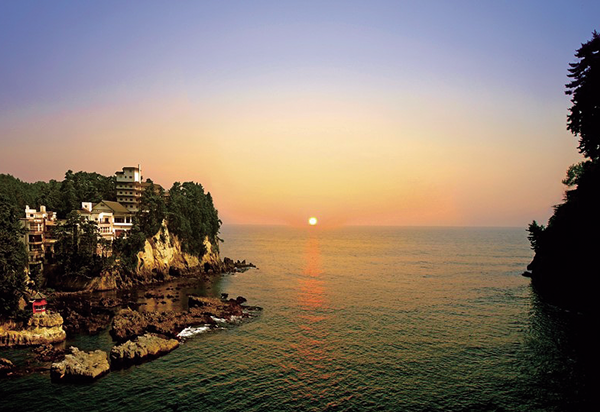 日本画の巨匠、横山大観が好んで描いた老松の緑、五浦の日の出、月の出。「五浦観光ホテル」は大観の師、岡倉天心が沈思黙考した六角堂を臨む文化の香り高い地に建つ宿。