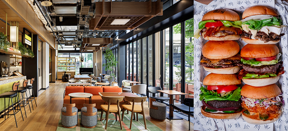 同ブランドの特徴は地域活性化。“人と人、人と街をつなぐ”ホテルを掲げており、ロビーではなく、宿泊者や地域の人も気軽に立ち寄れる場所として「トークショップ」を設置した。兜町のトークショップのコンセプトは「Burger&Greens」。カリフォルニア出身のシェフが手掛けるクラフトバーガーなどこだわりのフードやドリンクを提供する。