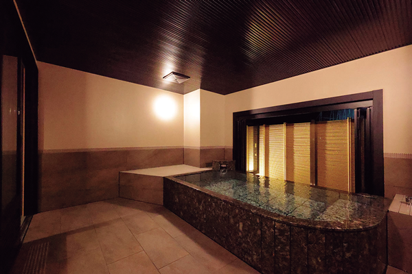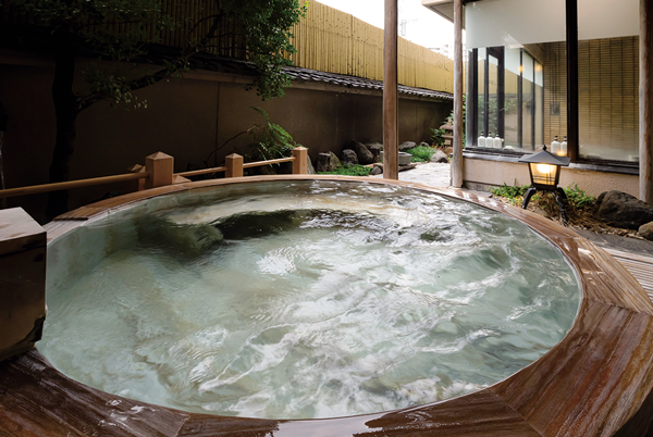 美肌の湯として名高い石和の湯のお風呂は、宝石輝く自慢の大浴場と四季香る源泉掛け流しの露天風呂を一晩中利用できる。すべての客室風呂も温泉のため、名湯を心ゆくまで堪能できる。
