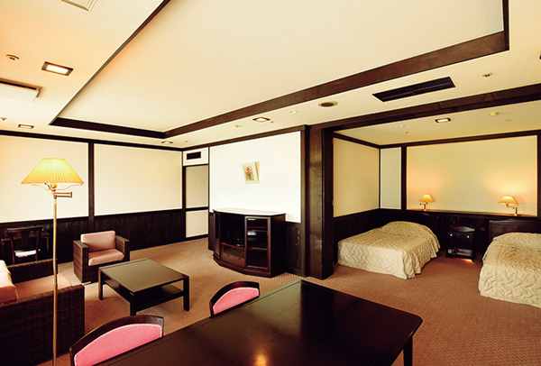 客室は、和室ベッド・和室・洋室のほか、ロングデスクを備えたワーケーション対応のお部屋や最上階の広々としたセミスイートと多彩。