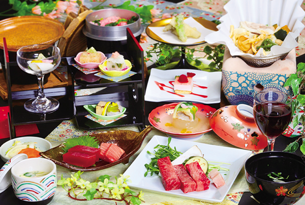 評判の会席料理や種類豊富なバイキングは、地元の旬素材を生かしたここだけの味。牛鉄板焼処「千」や、板前割烹「昌」では、また一味違うおもてなし料理がいただける。食後には、毎晩開催中の「慶山太鼓ショー」を満喫。一心に打ち鳴らす太鼓は迫力満点で必見だ。(中止の場合あり)