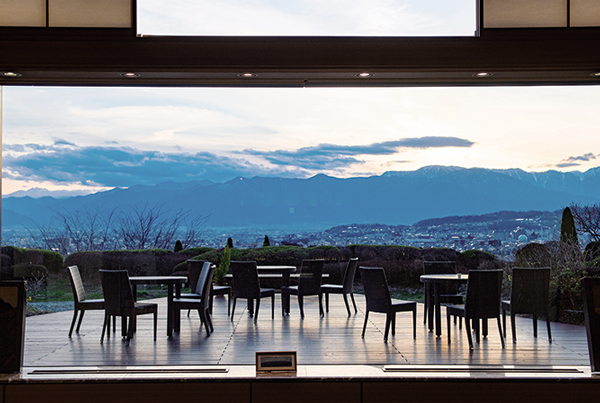 信州松本の郊外の高台に建つ「美ヶ原温泉 翔峰」。この地に湧く美ヶ原温泉は、奈良時代から1300年もの歴史をもつ効能豊かな古湯で、敷地内には豊富に湧き出る自家源泉を持っている。