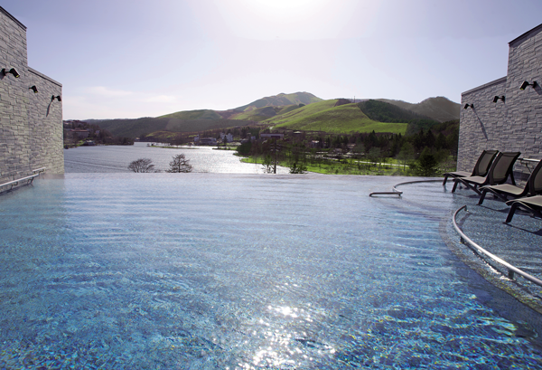 「天然温泉 湖天の湯」は木曾檜と天然石を基調とした男女別の内湯、混浴エリアと3つの湯処を楽しめる。「湖畔混浴 空」は目の前に白樺湖の景色が広がり温泉と湖が一体化して見える。レイクリゾートの開放感を堪能することでき、四季のうつろいを眺めつつ蓼科山の源泉に浸かる贅沢な時間を過ごせる。