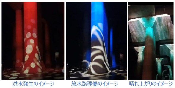 今回の新コースは「水害から日常を守る、首都圏外郭放水路とみんなの流域治水」がテーマ。①豪雨の予兆②洪水発生(危機)③首都圏外郭放水路稼働!④晴れ上がり(日常回帰と防災意識向上)――の4つのシーンで構成され、防災地下神殿を魅惑的なライティングと大迫力の音響で幻想的に彩り、普段のたたずまいとはまったく異なる地下空間を演出する。