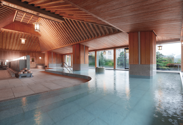 風呂:臨川閣「下留の湯」、飛泉閣「展望大浴場」、山水閣「野天風呂」、貸切風呂2、室内温泉プール