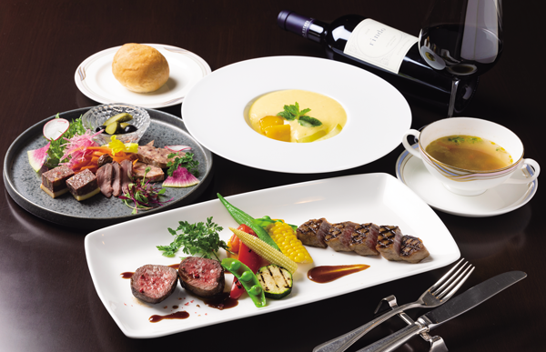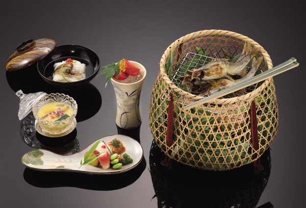 食事は、地元の旬素材を職人が一品一品真心込めて調理。客室での日本料理やダイニングでの和洋折衷会席、和食処での会席料理、レストランでのフレンチ、中国料理など、好みに合わせて選びたい。
