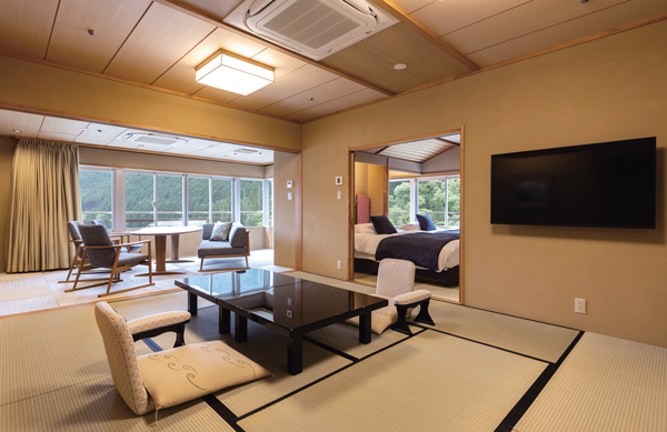 部屋:全264室(臨川閣74室、飛泉閣87室、山水閣98室、青嵐荘5室)