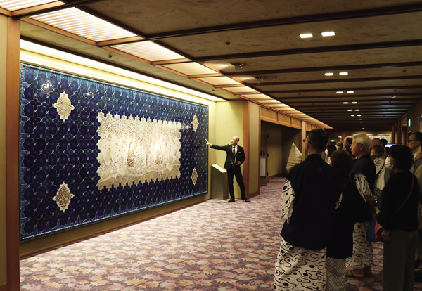 水明館の山水閣、飛泉閣、臨川閣に分かれた館内を彩る有名画家の絵画や壁画など、匠の技が生かされた芸術作品や施設をまわる「館内ツアー」。毎日夕方5時から約40分間、詳しく解説しながら案内する人気のツアーとなっている。