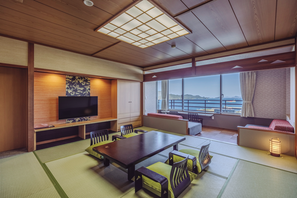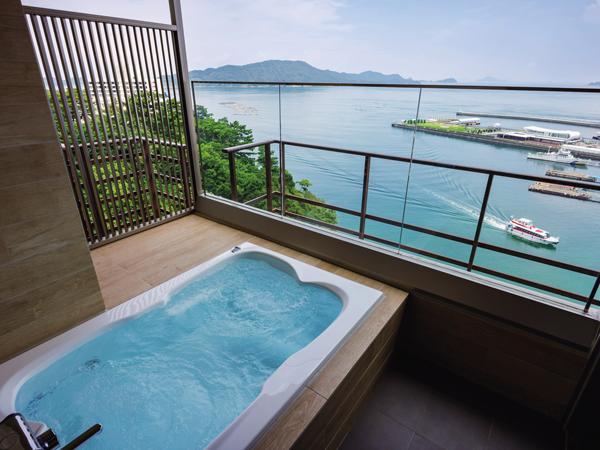客室は、海面40mからの眺望を堪能できる「嬉春亭」上層階「わたつみの章」をはじめ、「南館」はバリアフリー対応の洋室トリプルや露天風呂付客室など多彩。旅スタイルに合わせ、大小20種類の客室タイプから好みの部屋を選べるのも嬉しい。