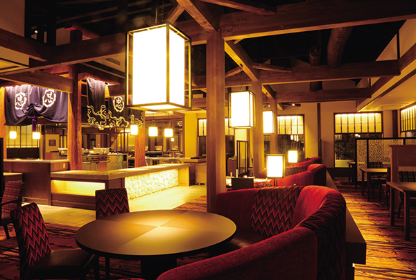 割烹ダイニング「丸忠」は、300年前の梁を使った木造建築とモダンな雰囲気のオーベルジュ風のダイニング。ライブ感あふれる調理風景を眺めながら、そこで調理された出来立ての料理を楽しめる。このほか、セレクトショップ「木の花小路」やクラブラウンジ「暫」など設備も充実している。