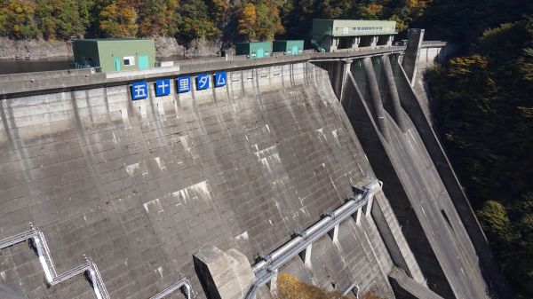 初めに訪れた五十里ダムは、重力式コンクリートダム。ダムの重さで水をせき止めている。洪水調節と河川の正常な流れの維持、発電を目的としている。1956年に完成し、高さは112㍍で、工事完了時は日本一だった。