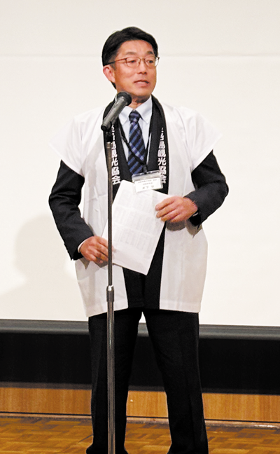 冒頭あいさつに立った木下会長は「今年4―9月の上半期は昨年を上回る来島者数となり、島内を巡ってもらう周遊の取り組みも成果を上げた」と強調したうえで、「淡路島は引き続き話題が豊富だ。南あわじ市では道の駅うずしおがリニューアルオープンし、洲本市では温泉街と町中を結ぶ自動運転バスの取り組みが進む。大阪・関西万博で賑わったパソナとオランダパビリオンの淡路島移転も進んでいる」と述べた。